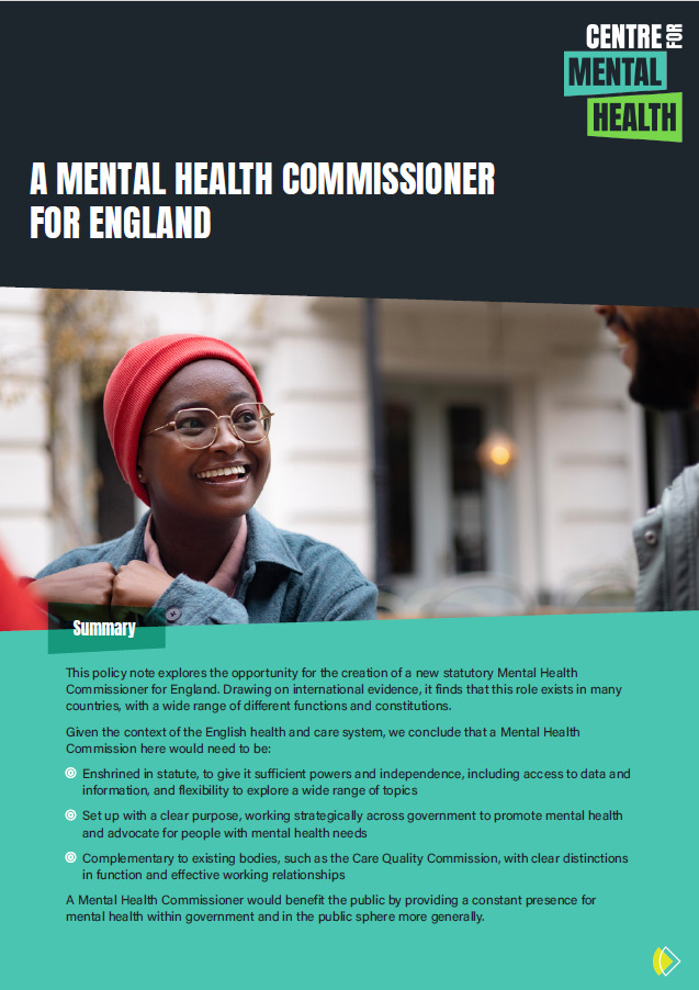 This briefing explores the opportunity for the creation of a new statutory Mental Health Commissioner, drawing on international evidence from Commissions in other countries.