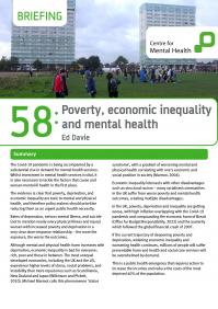 Poverty, economic inequality and mental health, by Ed Davie, explores evidence about the links between these factors, showing that living in poverty increases people’s risk of mental health difficulties, and that more unequal societies have higher overall levels of mental ill health. The briefing also demonstrates that poverty and economic inequality intersect with structural racism to undermine the mental health of racialised and marginalised groups in society.