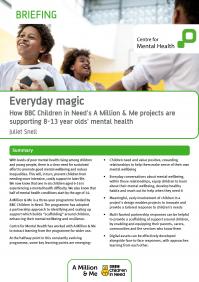 Centre for Mental Health is working with A Million & Me to extract learning from the projects funded by the programme. Everyday magic presents the insights gathered from the first two years of the programme, alongside evidence on the mental health of children aged 8-13, and highlights the inequalities that need to be addressed to ensure all children are supported.