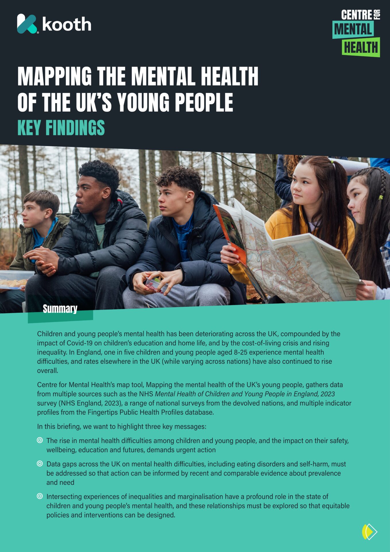 Children’s chances of having good or poor mental health are shaped by the places they live in and the support available there. This map tool, produced in collaboration with Kooth, enables comparison between nations and (for some indicators) between different local areas.