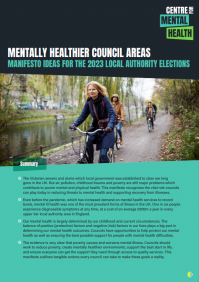 This briefing sets out ideas for 2023 council election candidates to put in their manifestos which would improve mental health in their communities. We have brought together some beneficial policies for local government to adopt, or enhance, in four domains: