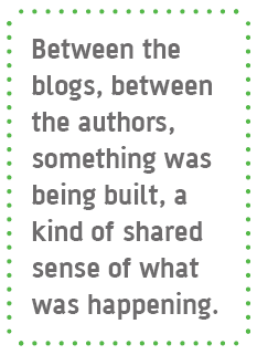Suddenly, as if stumbling into a clearing in the middle of a dark wood, here was space and light and perspective. Here was what I had been looking for without even knowing it: real people writing about mental health and mental illness and distress as it happened. Some blogs sang with poetry and glorious words; others with bluntness and awkwardness; others still with a kind of analytic exuberance that tried to make new shapes from old experiences and to put together ideas in ways that I’d never seen. Some of these bloggers were mental health professionals. Most weren’t.
